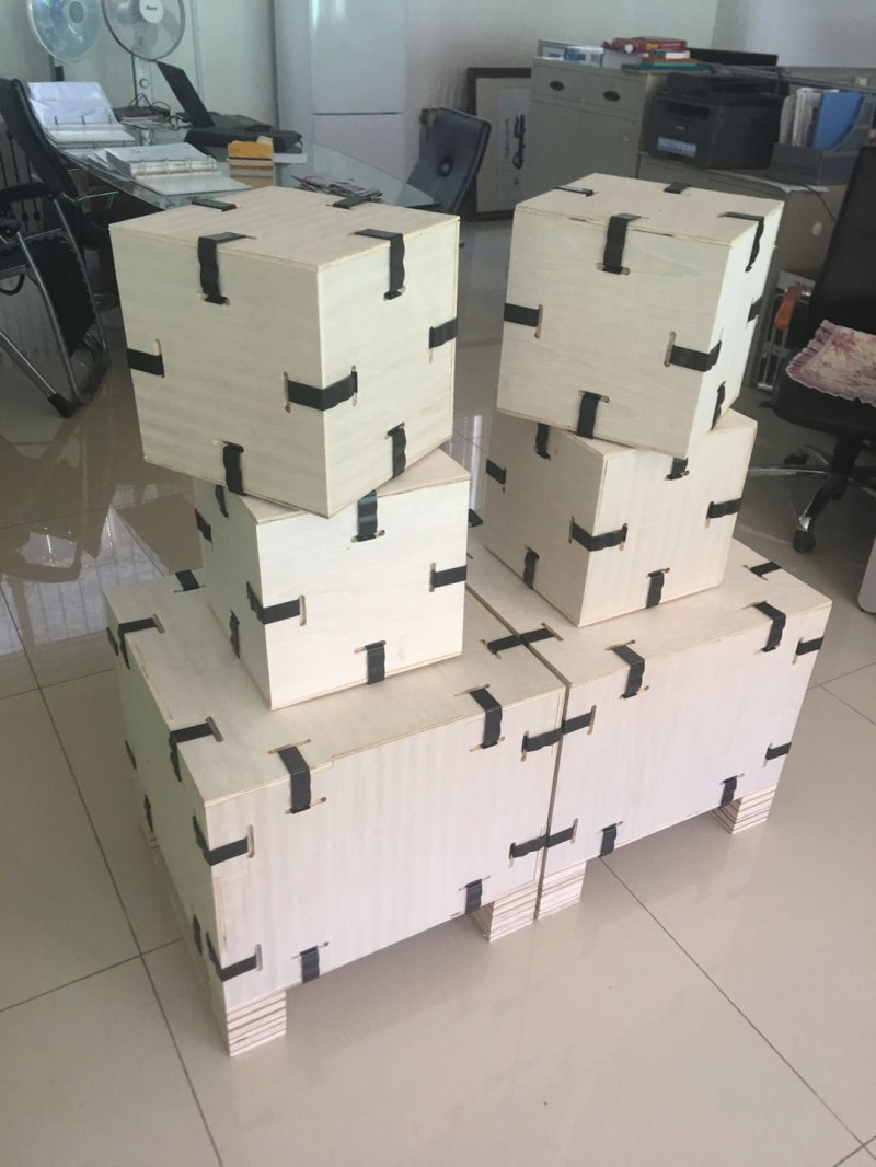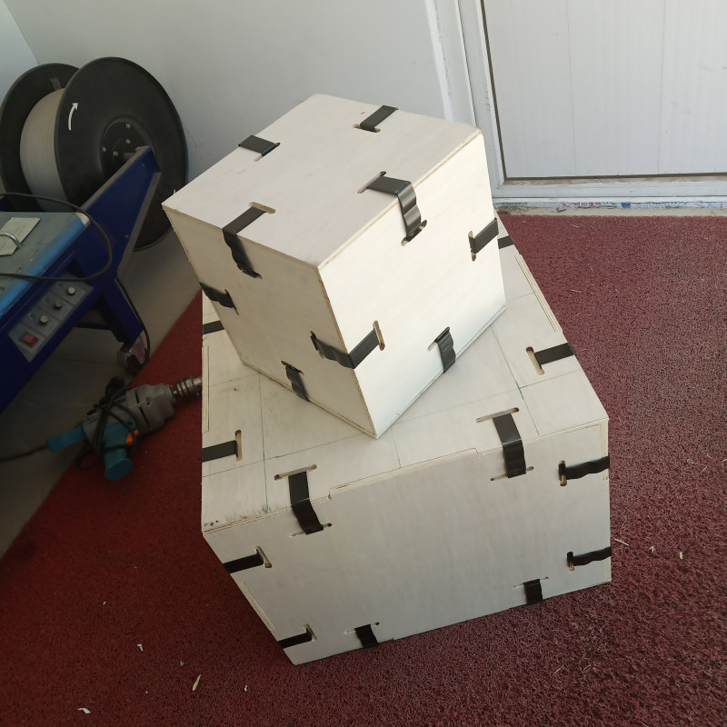 卡扣式木包裝箱全部采用高強度OSB板,箱體由高強度的金屬制件連接而成,其原理是箱體整體受力,無論是組裝還是運輸,都不會出現(xiàn)松動現(xiàn)象,同時避免漏釘、露釘、少釘、工藝粗糙、灰塵、雨淋、結構處理不當、運輸途中箱體碰撞造成的散架等問題;保障了產品的安全性,保證了客戶收貨時的完整性,同時由于是無釘化作業(yè),確保了現(xiàn)場包裝人員的安全。同材質條件下,卡扣箱性能超過傳統(tǒng)木箱。